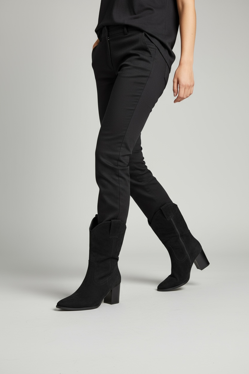 Crne čizme kaubojke na blok petu