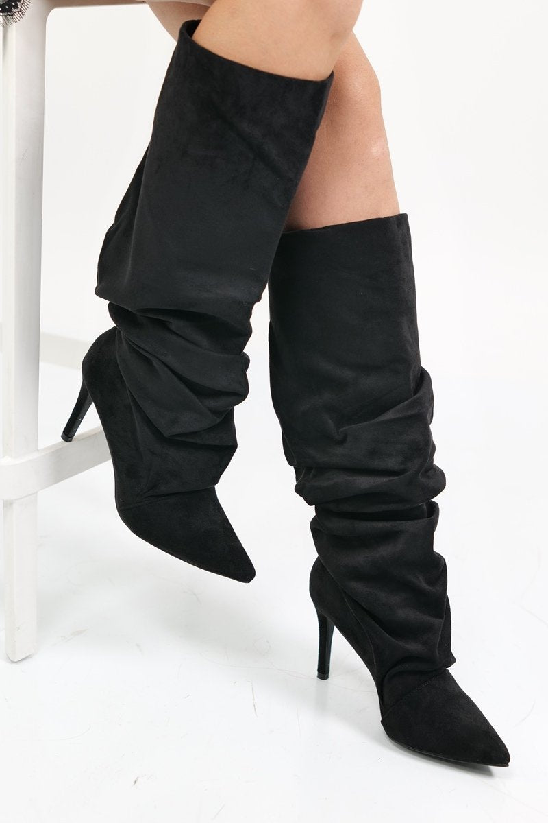 Črni loščeni škornji s tanko peto